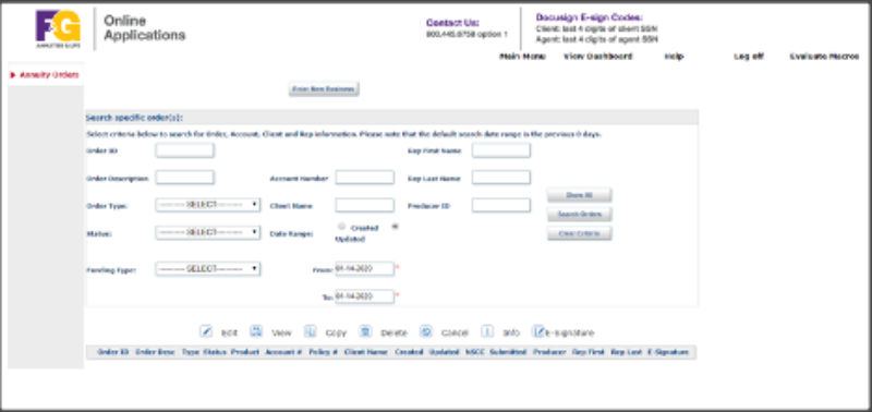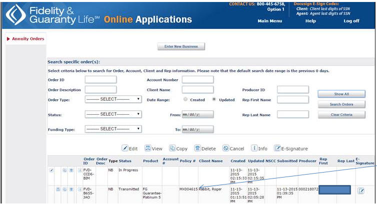 - Please write the assigned policy number on all documents mailed to us. The policy number can be found by selecting “Main Menu,” “Order Entry Dashboard,” and then “Show All.” A list of all of the business you have entered will appear along with the policy number assigned to each